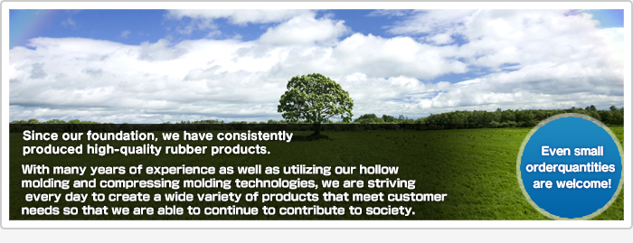 We manufacture rubber products by using hollow-molding technology. We accept orders of not only standard products but also custom-made products to meet various applications. We can flexibly accommodate customer needs for various forms, including thickness, size, and application. Please feel free to consult us about a wide variety of rubber products even in a small quantity: molded products for medical, laboratory and industrial use, and specifically droppers/suctions, seals, plugs, etc.